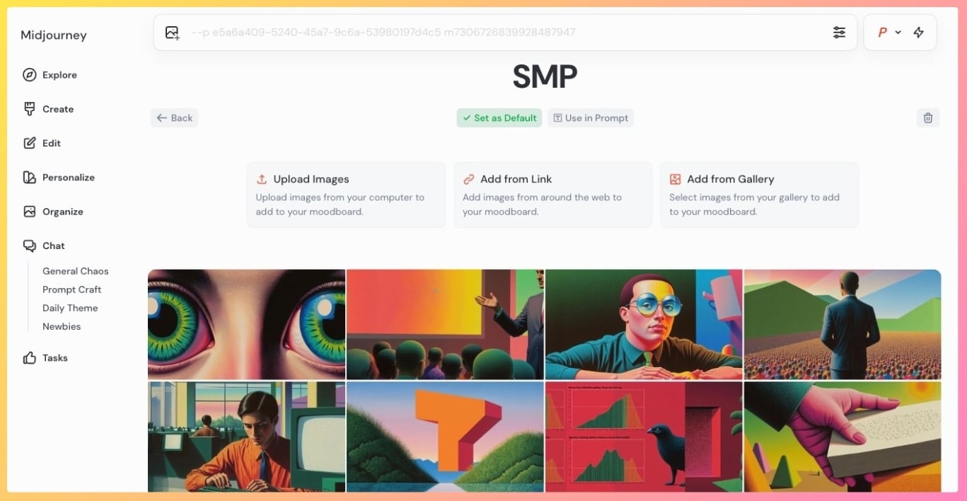 En teoría (solo en teoría), así es como puedes usar un moodboard en Midjourney.