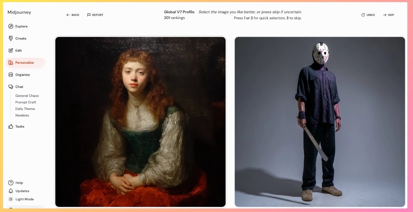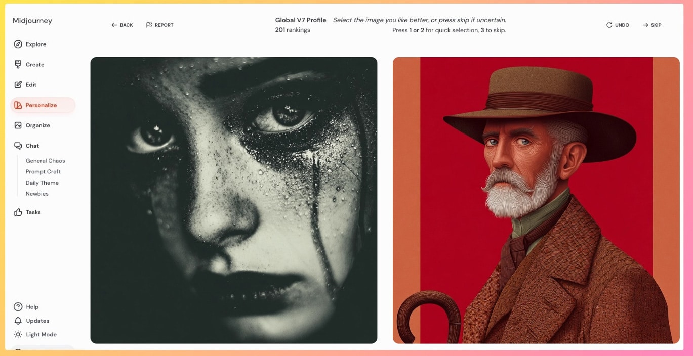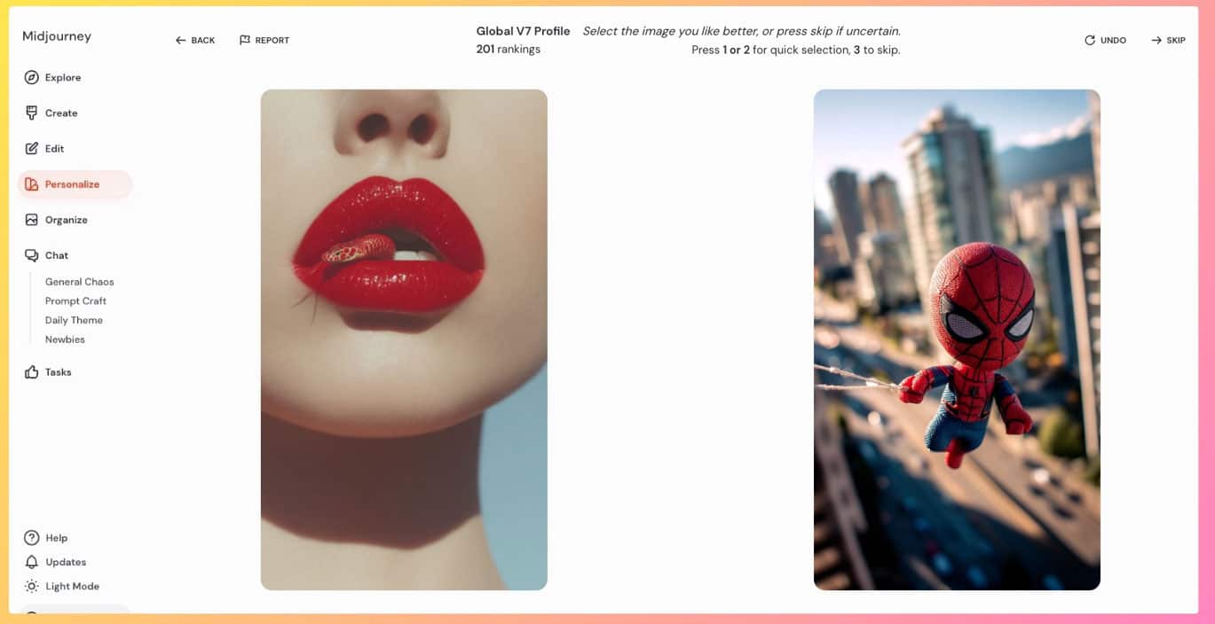 2. Aparecerán dos imágenes. Selecciona la que mejor refleje tu estilo o pulsa 3/Skip si ninguna funciona (evitarás información errónea).