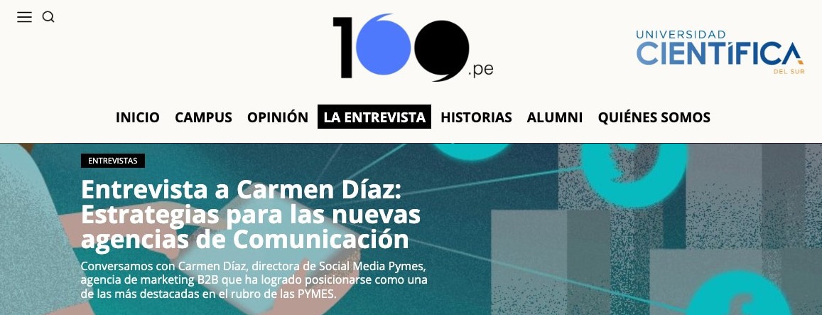 Entrevista concedida por Carmen Díaz Soloaga, directora de Social Media Pymes, al medio digital de la Universidad Científica del Sur (Perú).