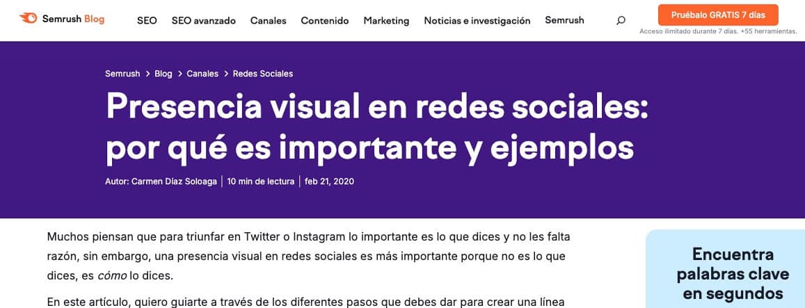 Artículo de Carmen Díaz Soloaga, content marketing manager y directora de Social Media Pymes, publicado en el blog de Semrush.