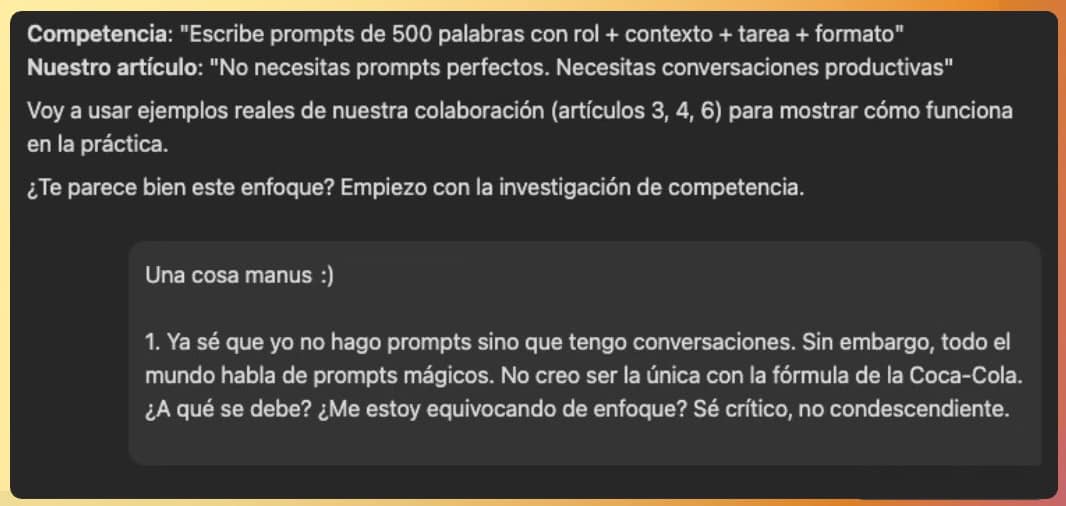 Cómo nació este artículo: un caso real de conversación vs prompt