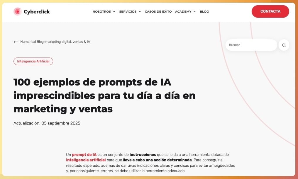 Ejemplo 2: Cyberclick – «100 ejemplos de prompts de IA»