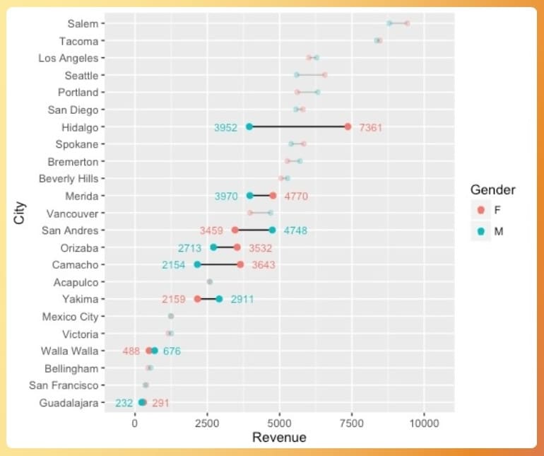 Connected dot plot o dumbbell chart (diagrama de mancuerna)
