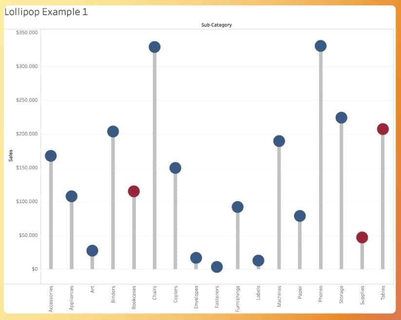 Este método es ideal cuando quieres comparar valores entre diferentes categorías, similar a un gráfico de barras pero más limpio.